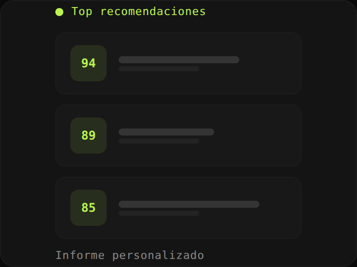 Cada recomendación sale de datos que hemos curado, no de una caja negra que improvisa.